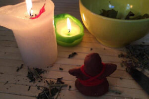 Для рождения оберега понадобятся две иглы, красная нить, воск или восковая свеча, глина, 5 мелких гвоздей (самых мелких) или колючек от боярышника.